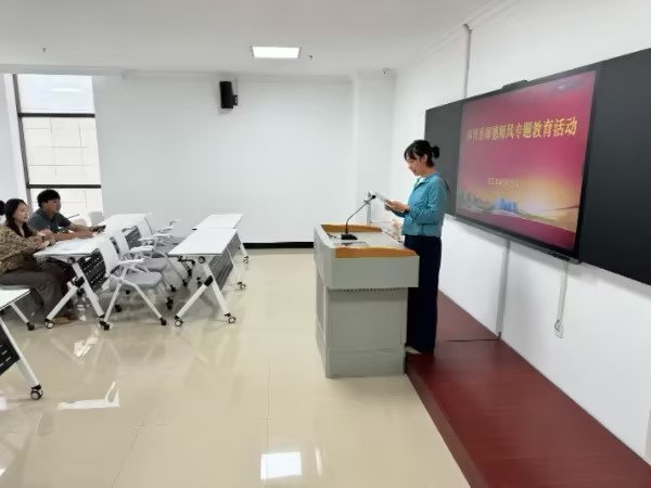 活动由李思莹老师主持,她首先强调了师德师风建设的重要性和紧迫性,指出教师是立校之本,良好师德则是为师之基,每一位教师都应成为学生心灵的灯塔和道德的楷模。活动中,她详细解读了《高等学校教师职业道德规范》和《新 时代高校教师职业行为十项准则》等文件精神,要求全体教师深入学习领会,切实将师德规范内化于心、外化于行。高校教师要以立德树人为根本任务,把教书育人作为自己的神圣使命和崇高职责。